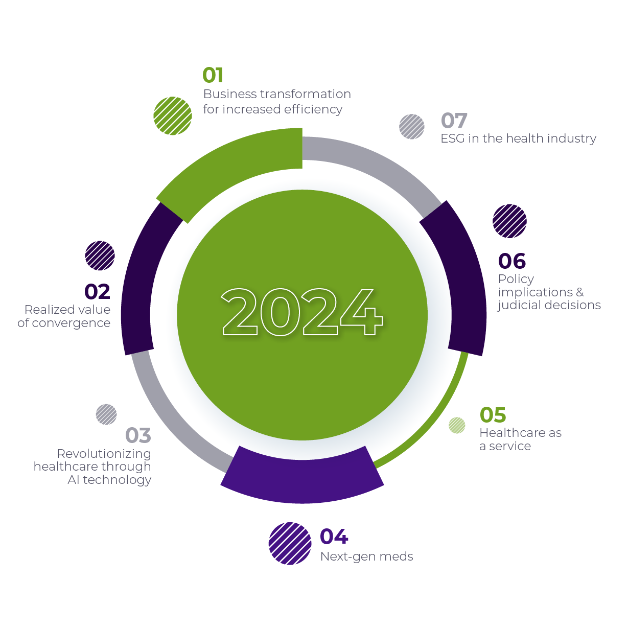 As we begin 2024 and look ahead to the future, we believe there are seven key themes that will have an outsized influence in shaping the way that healthcare will be conceived, delivered, and financed.