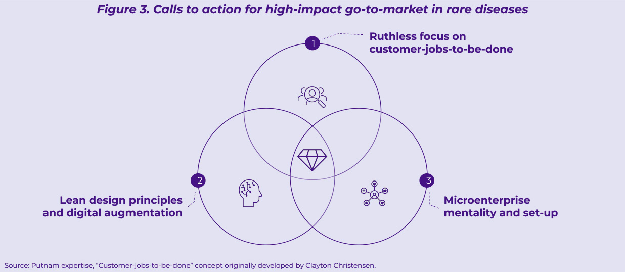 We see three critical calls to action that a successful go-to-market model in rare diseases will need to address (Figure 3).