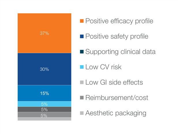 Example: Derived importance of key drivers to prescribing choice: