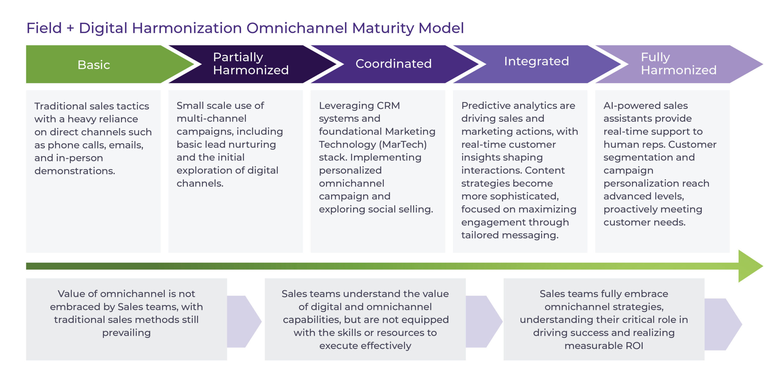 To help you get started, we’ve developed a user-friendly maturity model. This tool serves as your guide, mapping the progression from a basic approach to a fully integrated, customer-centric omnichannel strategy that harnesses the full power of technology and data to deepen engagement and achieve better results. With it, you’ll be able to identify current strengths, pinpoint opportunities for growth, and prioritize actions that will elevate your organization’s capabilities. Begin your assessment below and take the first step towards setting new standards in sales and marketing excellence.