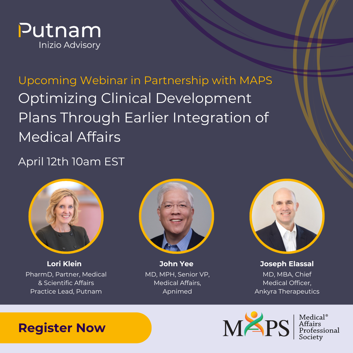 During the webinar, we will discuss considerations for the appropriate structure, resources, and timing to get Medical Affairs involved early enough in the process to optimize clinical development plans informed by medical customer insights. We will also have a dialogue around how early involvement of Medical Affairs can influence which indications should be pursued for a label versus investigator-initiated research.