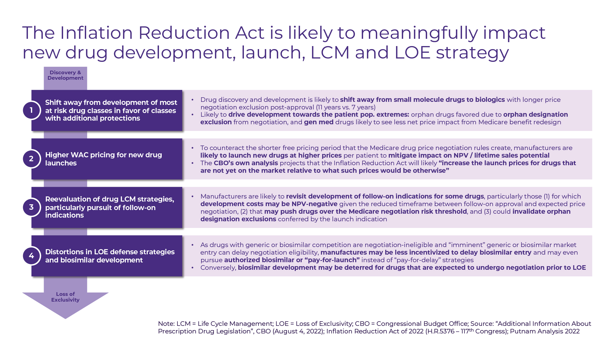 Beyond the direct results of the Inflation Reduction Act – including limiting price increases for medicines post-approval and reducing out-of-pocket drug spending for Medicare enrollees – there are a broader set of indirect effects that are likely to touch every drug manufacturer and every product from pre-clinical development to late lifecycle.